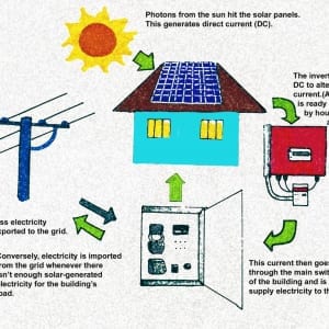 Solar panels solar panel : When the sun panels will convert sunlight into energy direct current (DC). This current flows through the charge controller to charge the battery